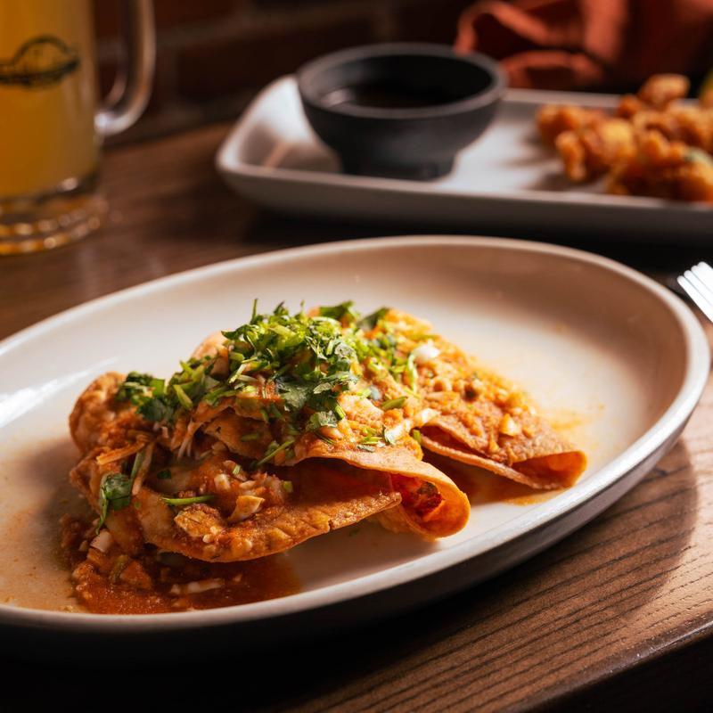 Pieces of corn tortillas soaked in your choice of red, green or molcajete salsa with your choice of eggs | Add protein +$6.00